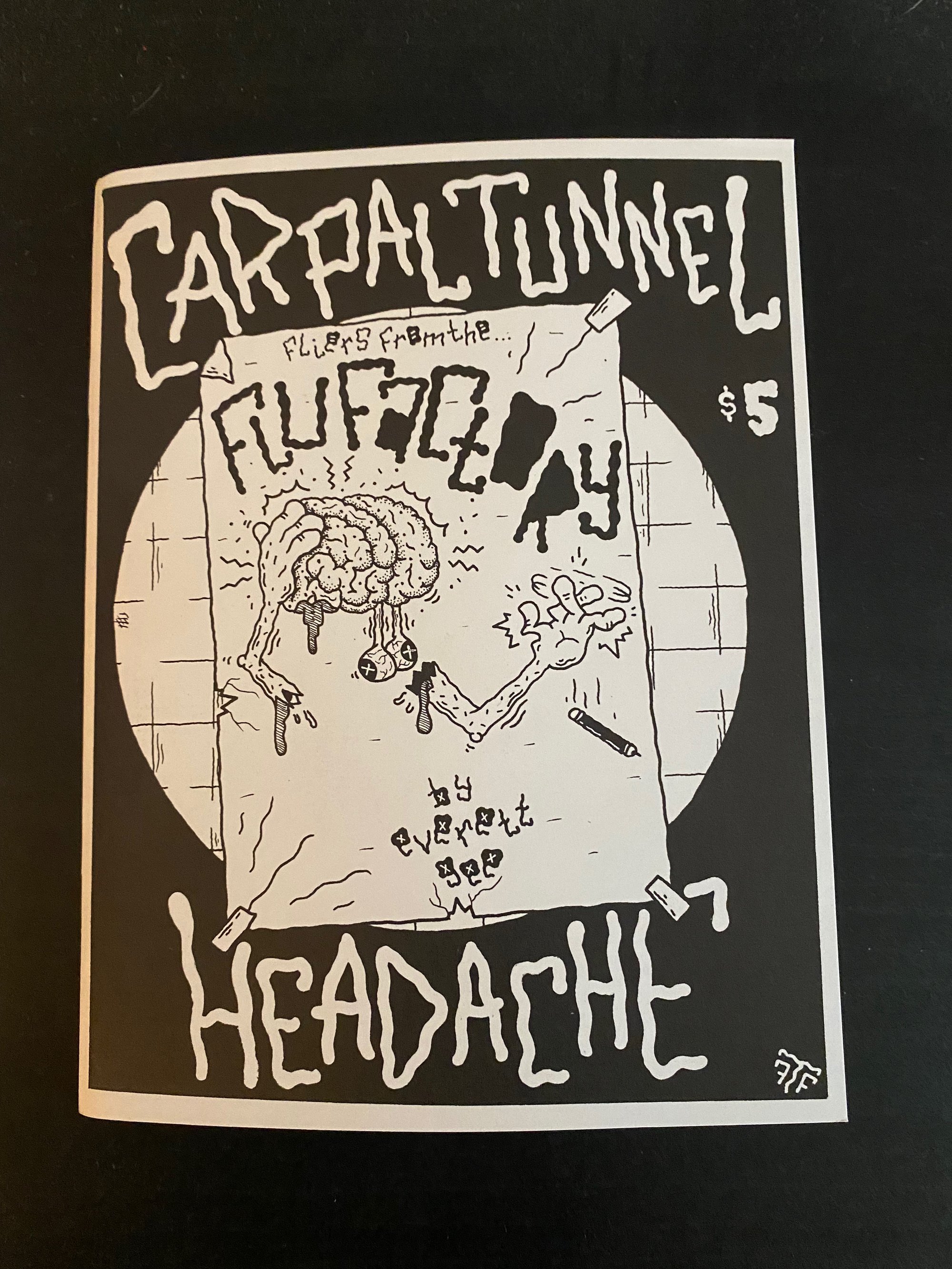 From 2010 to 2022, when he wasn't releasing comix or screen printing, Everett Gee was cranking out fliers left and right for punk shows—mostly in Little Rock, Arkansas and surrounding areas—amongst a thriving punk scene. When there was no show, he'd put together a fake flier for shits and grins (there's at least a couple of those in this zine). Carpal Tunnel Headache (Fliers From The Flu Factory) is a collection of most but not all the fliers Everett managed to not lose during this time.